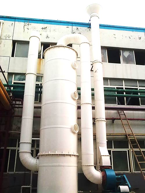 玻璃鋼吸收塔不受冬、夏天氣候變化限制、美觀大方、經久耐用、耐腐蝕。玻璃鋼吸收塔分為、上塔體、筒體、循環液糟組成,塔內有兩層填料,一層斜波紋板、二層階梯環,具有較大的表面積氣液接觸,充分傳質效率高。 玻璃鋼吸收塔的型線合理,氣流平穩,材質優良,色彩鮮艷,表面膠衣樹脂內含有抗紫外線劑,耐老化,強度高,重量輕,耐腐蝕。下塔體按訂貨要求,可配有溢水、排污、自動給水管,可由此處直接吸水,省去冷卻池,上面裝有防噪消聲墊,有效降低了滴水聲。